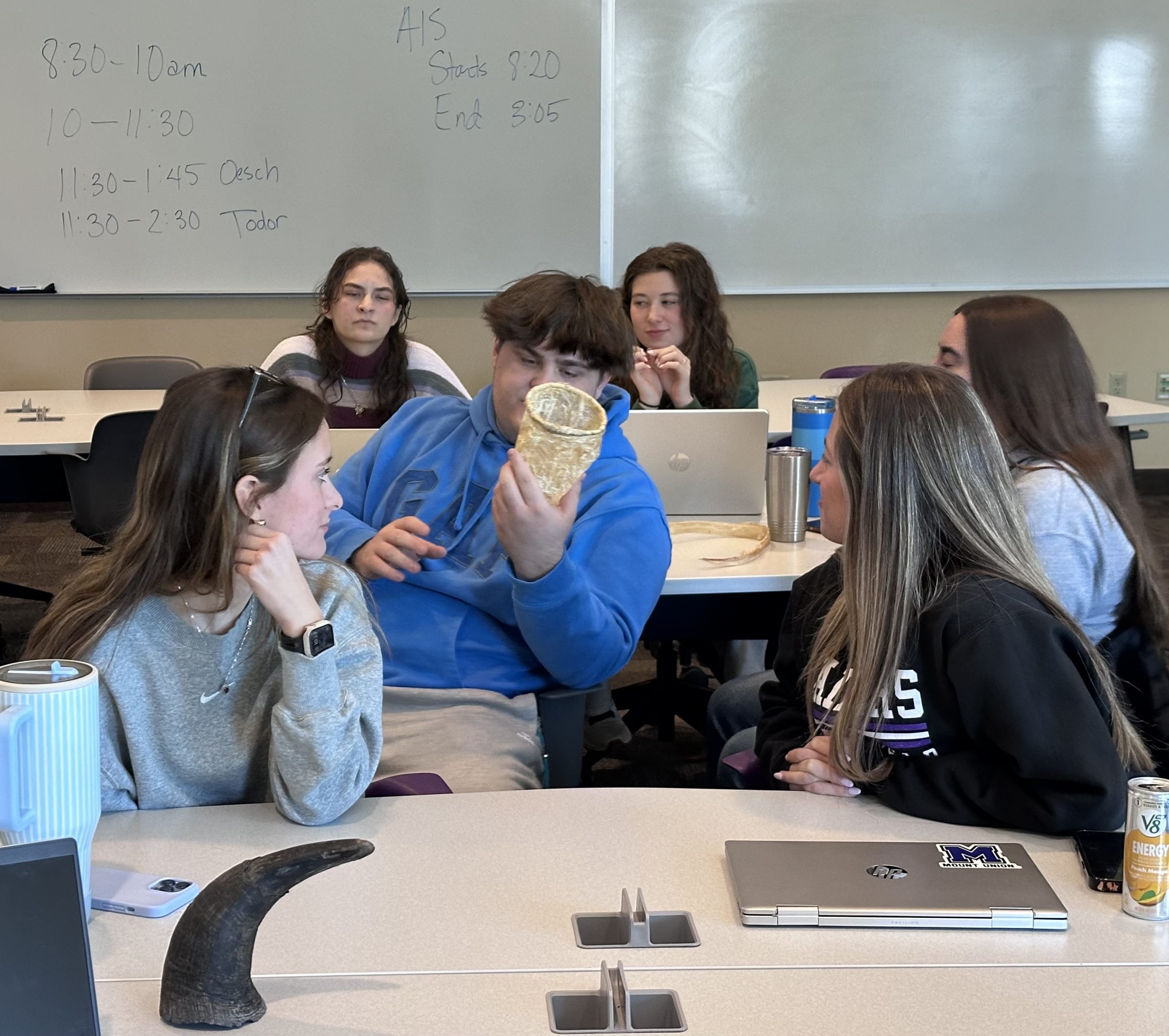 KSU with Buffalo Artifacts & AR Junior level students at Kent State University, Kent, Ohio taking social studies teaching methods from Dr. Scott Durham were getting hands on experience with primary source artifacts about the Northern Cheyenne Tribe. They used Ahtove.org to experience Augmented Reality with Chitat in regalia (first picture – Chitat is 6 ft. tall), researched about artifacts from Randall Tall Bull on the uses of the buffalo (second and third picture), and then touched and talked about the artifacts from the buffalo trunk. Dr, Durham shared about the importance and relevance of using artifacts in social studies instruction as these students were preparing for a future in social studies at the high school level. You can learn more about the Northern Cheyenne Tribe, AR and the Buffalo Trunk HERE. https://ahtove.org/buffalo-trunk/ The Lodge Approach has created educational websites that you can view HERE.https://thelodgeapproach.org/educational-websites